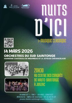 La Joyeuse Chevancelaise se produira, le 14 mars à 20 H 30, au Centre des Congrés de JONZAC dans le cadre des NUITS D’ICI proposées par la CDCHS. Venez nombreux les applaudir.