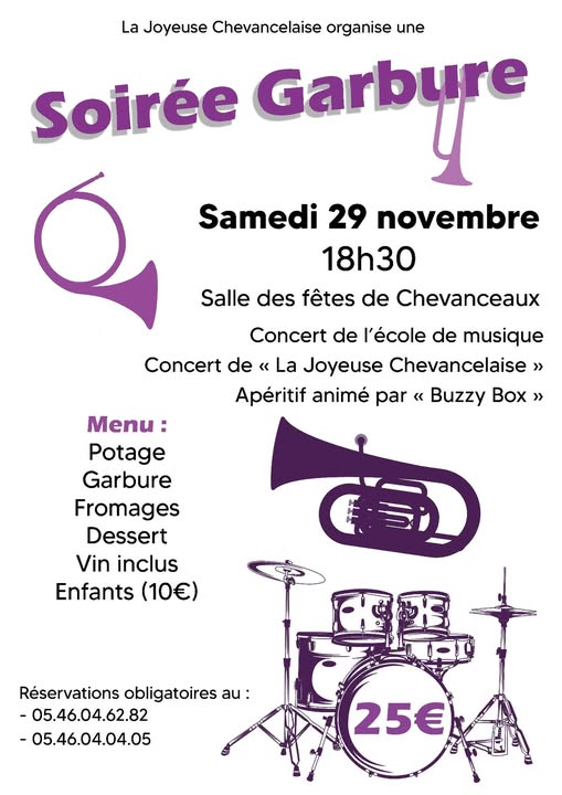 La Joyeuse Chevancelaise a le plaisir de vous accueillir à sa Soirée Garbure et de vous présenter toutes ses formations.