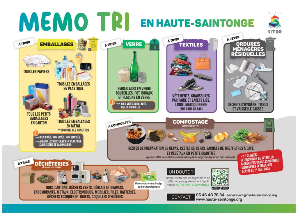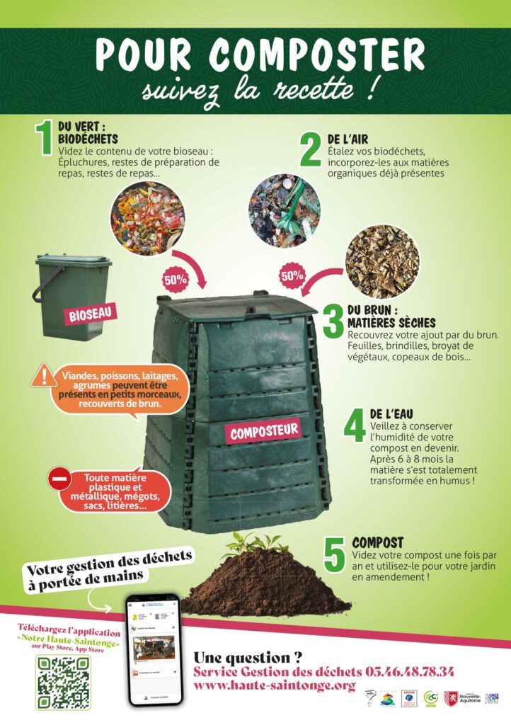A partir du 1er janvier 2024, la Communauté des Communes de la Haute-Saintonge a communiqué sur la loi Anti Gaspillage avec le devenir des biodéchets qu’y n’iront plus dans le sac noir et devront être compostés. Cela fait suite à une étude menée sur le territoire qui a permis d’identifier la solution la plus pertinente pour gérer les déchets compostables.